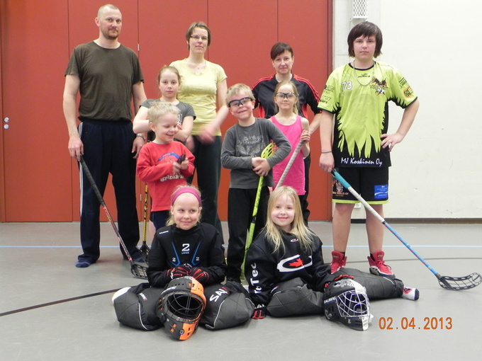 Turengin Perhesählykoululaiset 2.4.2013: Takana vas.: Jarno Aronen, Annakaisa Virtanen ja Satu Lappalainen Keskellä vas.: Johanna Haapanen ja Assi Aronen Edessä vas.: Väinö Virtanen, Vilho Virtanen ja Aleksi Lappalainen Maalivahdit vas.: Hilma Virtanen ja Julia Lappalainen |